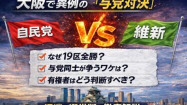 その他日常のモロモロ なぜ大阪で自民vs維新の与党対決が起きるのか?解散総選挙の異例構図 大阪で起きている自民vs維新の「与党対決」はなぜ異例なのか。19区全勝の背景や与党同士が争う構造、有権者は何を基準に判断すべきかをわかりやすく解説します。 2026.01.14 その他日常のモロモロ